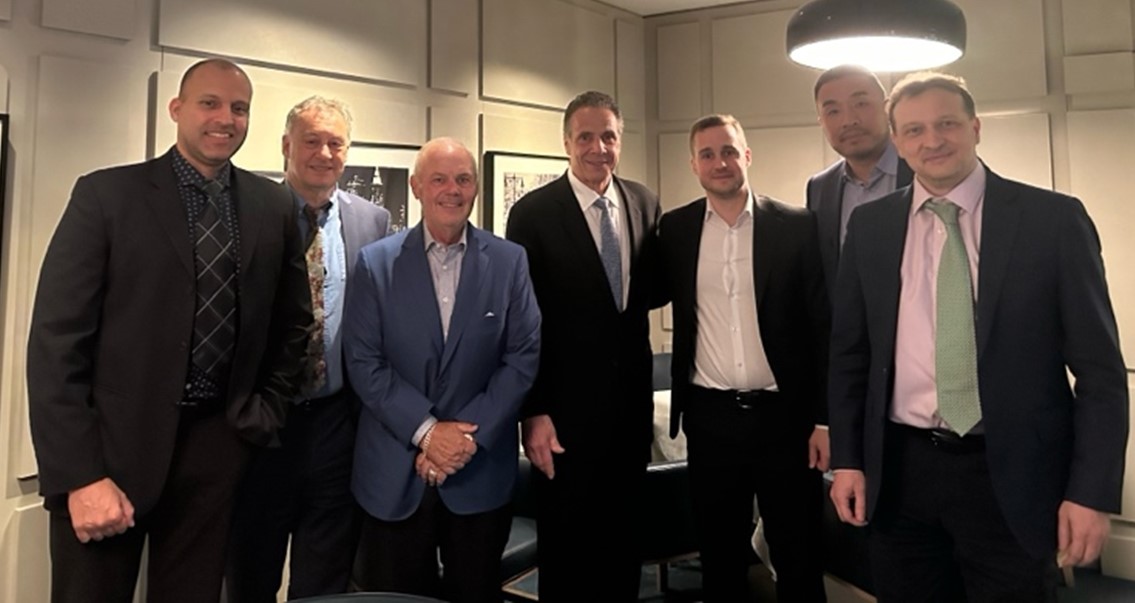 Figure 2 – (left to right) Jaisun Garcha, CFO of NANO Nuclear; Prof. Ian Farnan, NANO Nuclear’s Lead of Nuclear Fuel Cycle, Radiation and Materials; David Huckeba, Chairman of NANO Nuclear Executive Advisory Board for Transportation; Gov. Andrew M. Cuomo, NANO Nuclear Executive Advisory Board Member; James Walker, NANO Nuclear CEO and Head of Nuclear Reactor Development; Jay Jiang Yu, Founder & Executive Chairman of NANO Nuclear; Prof. Eugene Shwageraus, NANO Nuclear’s Lead of Nuclear Reactor Engineering
